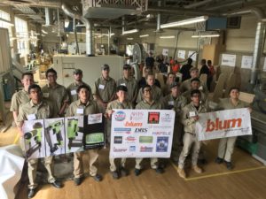 From April 20th to the 21st the top students from SkillsUSA California’s six regional contests competed at Chaffey High School in Ontario, CA to determine who will represent California at the National level. Local Blum representative Lee Schuette assisted the students in attaching their hinges using a Blum Minipress P and helped them install their Movento drawer slides. Drawer Box Specialties custom made the dovetailed drawer boxes for the students to assemble. Decore-ative Specialties contributed the solid wood door and drawer fronts. ESI provided wood edgebanding and students had the opportunity to use an SCM Olimpic edegbanding machine. The drawer knobs were donated by Kemp Hardware and the levelers come from Hafele. Leitz Tooling donated four new saw blades for the event, which were given to Chaffey High School after the competition. Karl Frey from Colonial Saw introduced the students to the Zeta joinery system with a contest loan of a Zeta machine and a donation of Tenso connectors for all the Cabinetmaking students. “The industry support we received for the California woodworking competitions this year was amazing. Not only was a majority of our contest material and hardware donated, but we also had a great group of volunteers from both industry and from education who helped run the event over the weekend” says AWFS Education Director Adria Torrez. The contests incorporate preparation of a bill of materials, material optimization, cutting parts, installation of hardware, application of edgebanding and decorative molding, and use of different power tools and equipment.